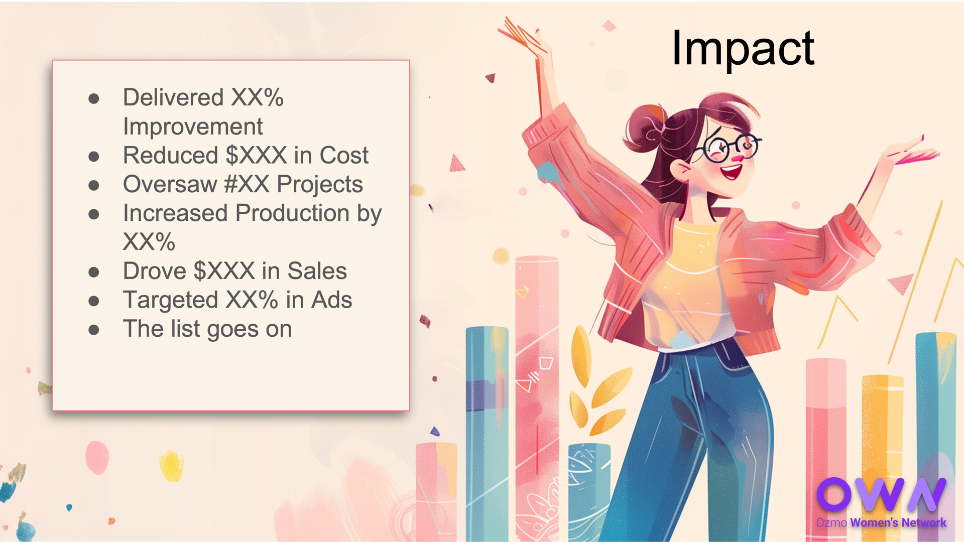 The next big thing is to make sure you call our your impact and include hard numbers… Don’t have hard numbers? Start collecting them. These numbers show impact at each step in your career and that you are a driven person. Exactly what the hiring manager wants to see.