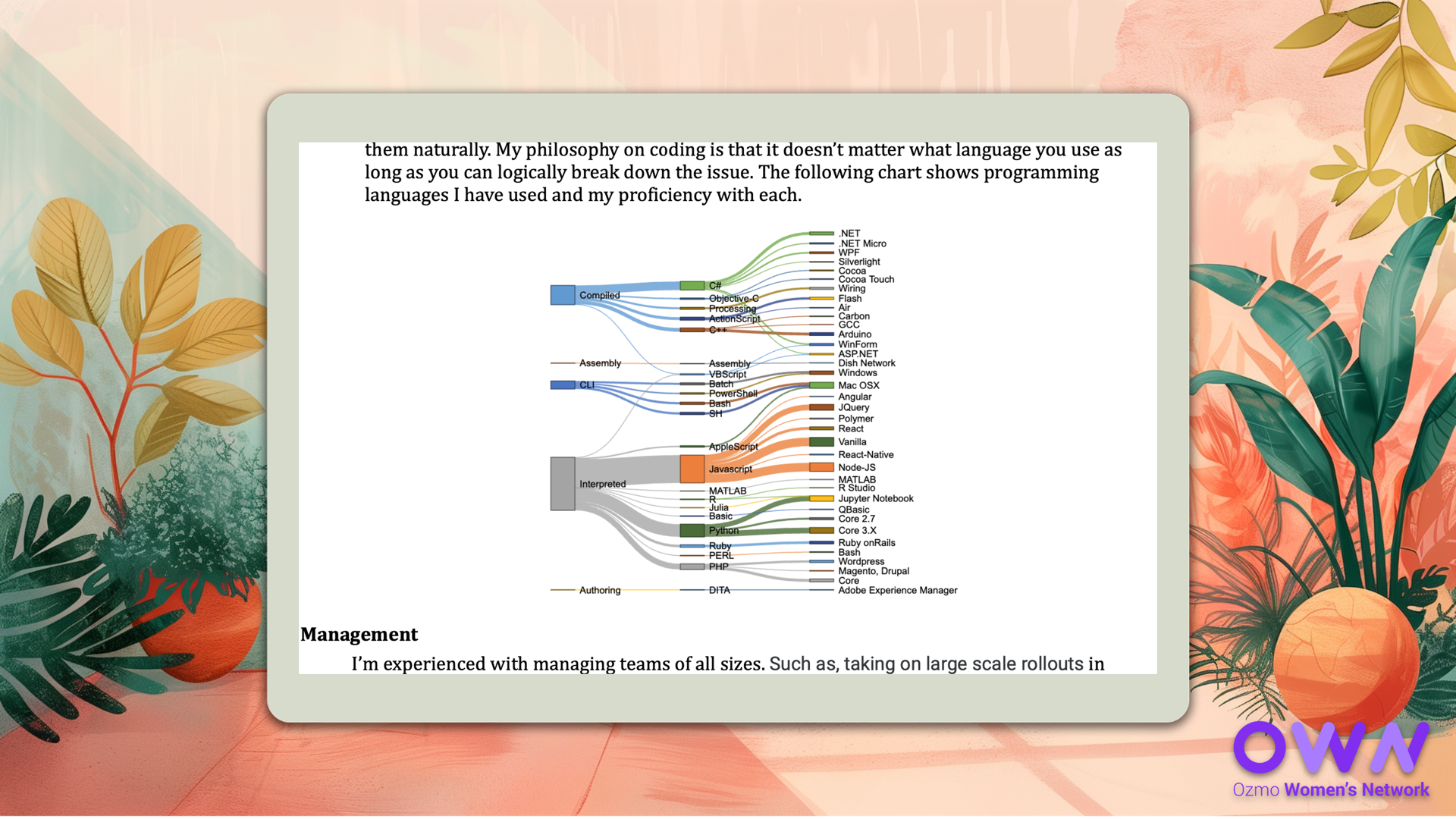 In an older version of my resume I did this as a pie chart. The idea is have some visual element that pops… That covers the tips for your resume, now let’s move into networking.