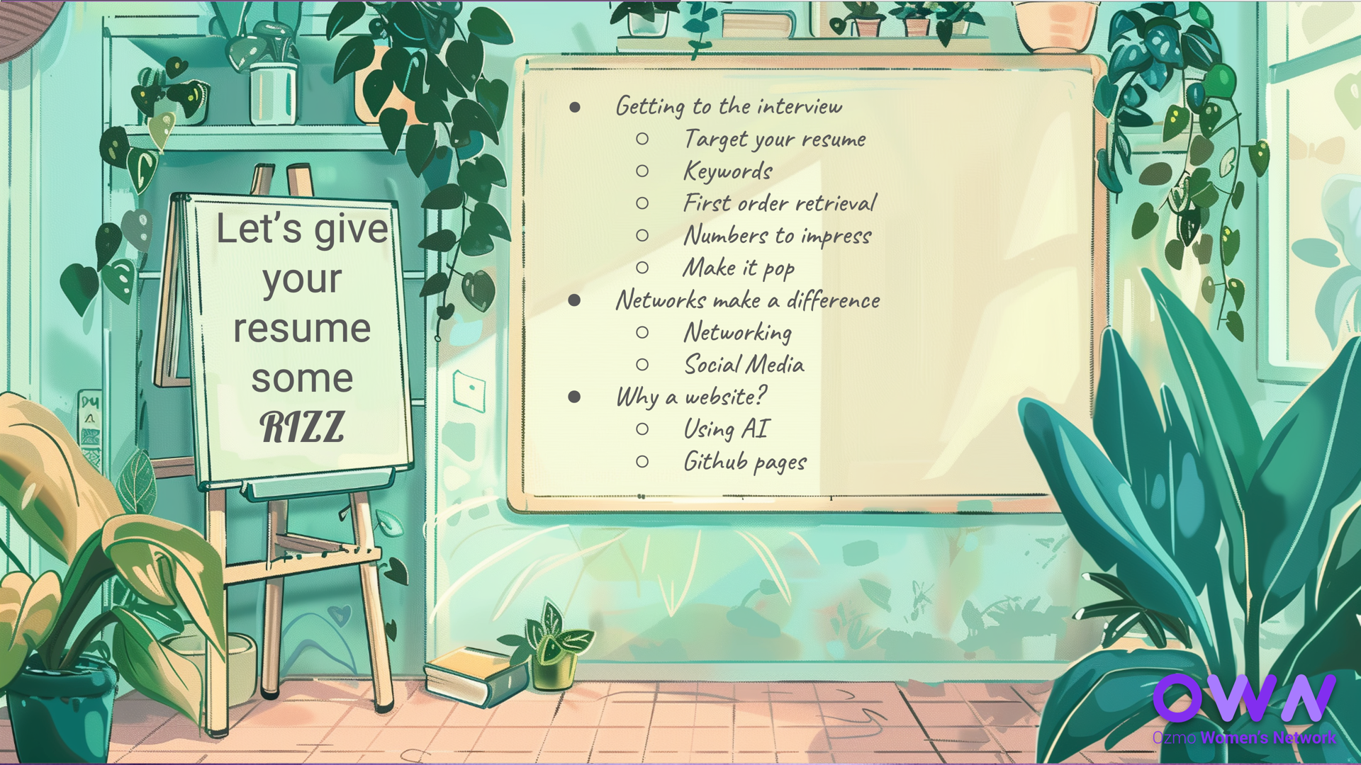 During this presentation I’ll talk a lot about how to best use AI to customize and optimize your resume. I’ll introduce you to some concepts for prompt engineering that will help the output from AI be somewhat safe but using any generative AI comes with risks and you should always evaluate the output. Some risk include: Hallucinations (The bot will make up stuff) Relying on job input and not verifying you have the skills it’s saying you do Taking layouts from others Bad or broken english With that being said if you take the output and put your own spin on it and utilize frameworks to aid then they can be a tremendous help.