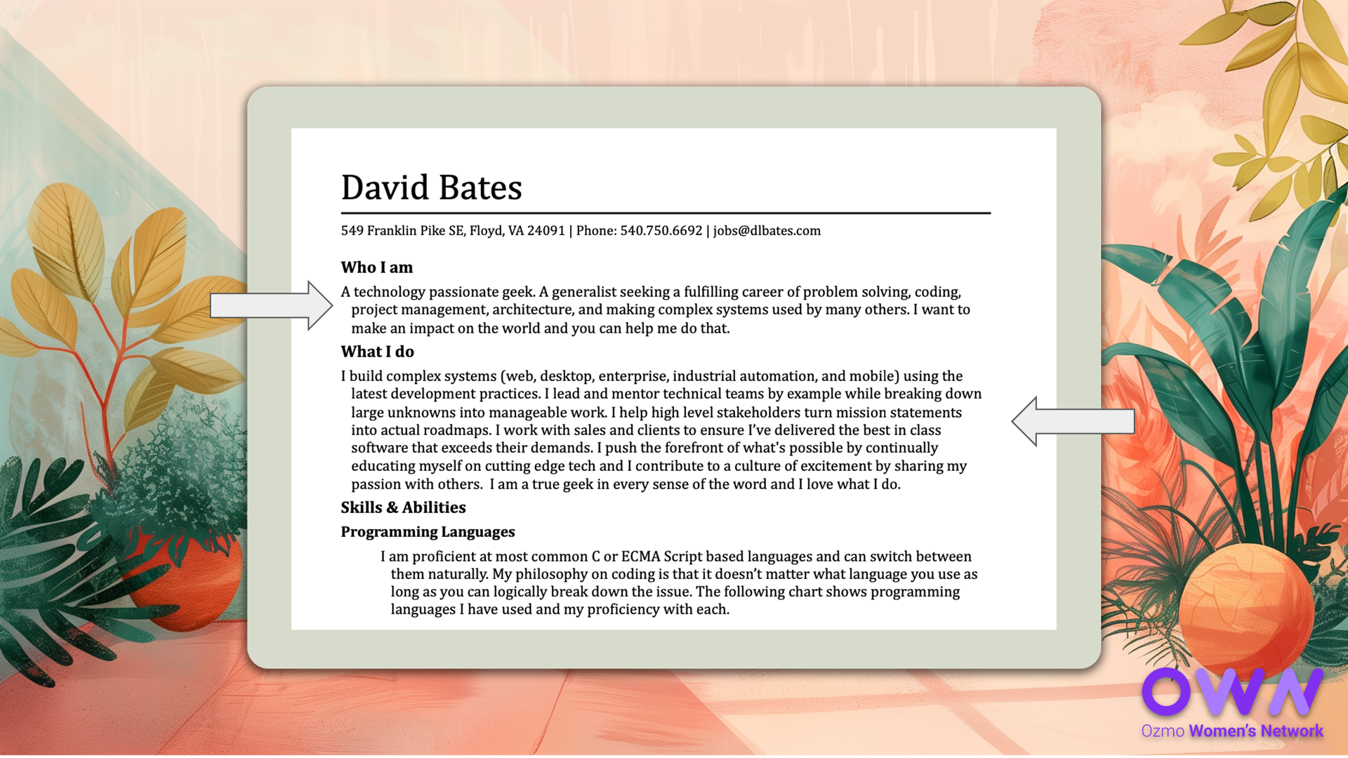 You’re resume is much like a dating profile. I must admit I haven’t dated in 24 years but I do have tiktok so… I’m basically still hip… You are basically marketing yourself in your resume, the people that read it will have many to go through so you want to make sure you leave an impression so they can’t help but swipe right. First we’re going to talk about the resume itself and how to improve it Then we’ll get into networking both in-person and online Finally I’ll show you how to take your resume and create an online presence with it that you own.
